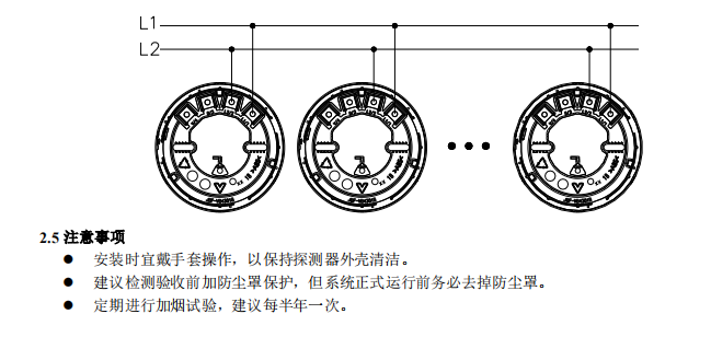 端子LI、L2分別接值號(hào)線(xiàn)L1和L2,無(wú)極性,信號(hào)線(xiàn)采用ZR-RVS-2XlJmm2雙絞線(xiàn)。