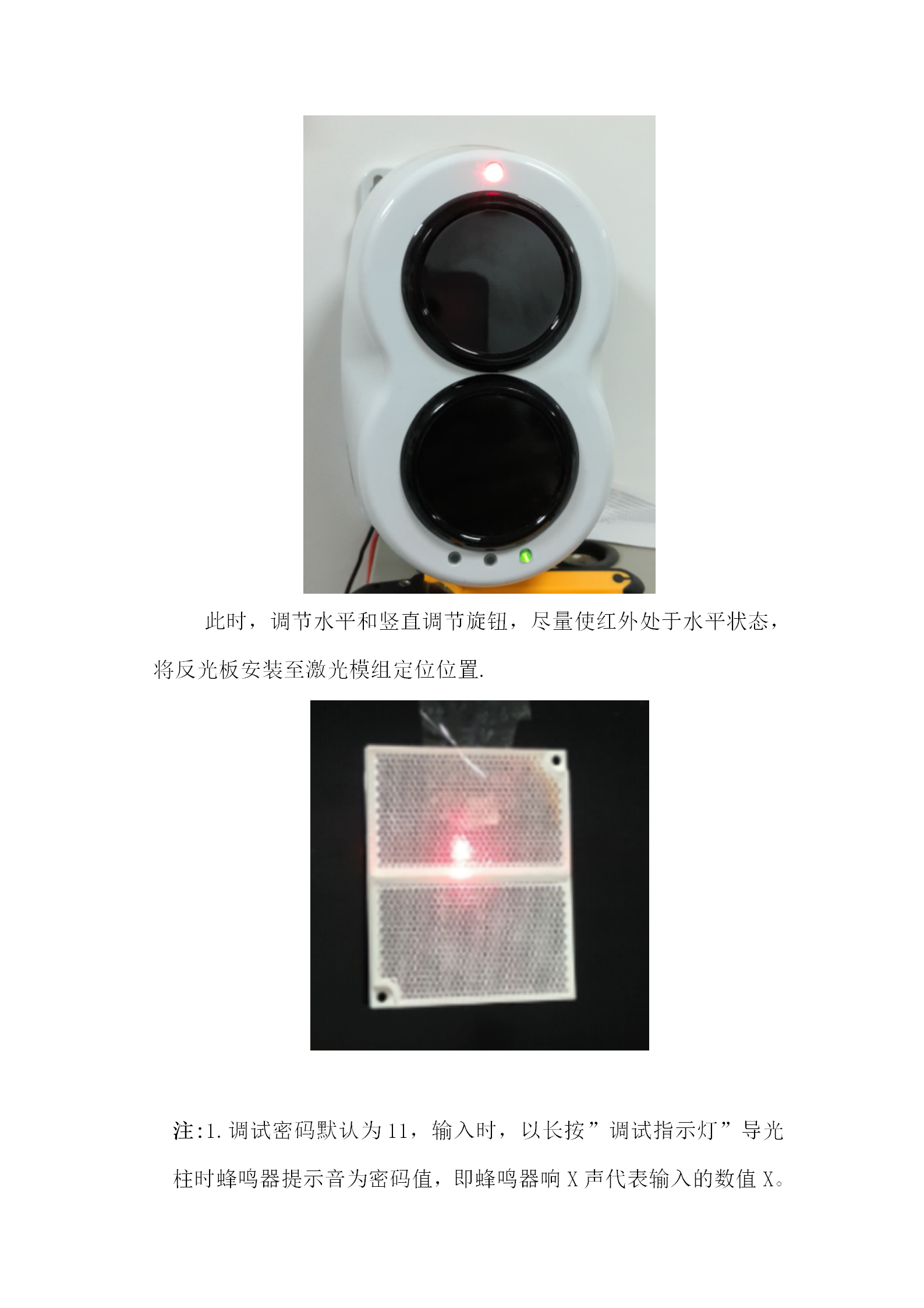 注:1.在調(diào)節(jié)過程中,激光模組光斑會出現(xiàn)不停留在反光板上的情況,此情況為正常狀態(tài),繼續(xù)調(diào)節(jié)至調(diào)試指示燈為常亮狀態(tài)即可.