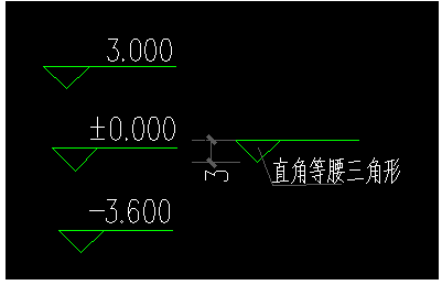 標(biāo)高符號(hào):按照GB50001-2010《房屋建筑制圖統(tǒng)一標(biāo)準(zhǔn)》規(guī)定的標(biāo)高符號(hào),數(shù)字表示三角尖所指平面的標(biāo)高。單位為米,小數(shù)點(diǎn)后保留3位,±0.000一般代表該建筑物的室內(nèi)地坪為相對(duì)零點(diǎn),往上不加+號(hào),往下冠以-號(hào)。例:
