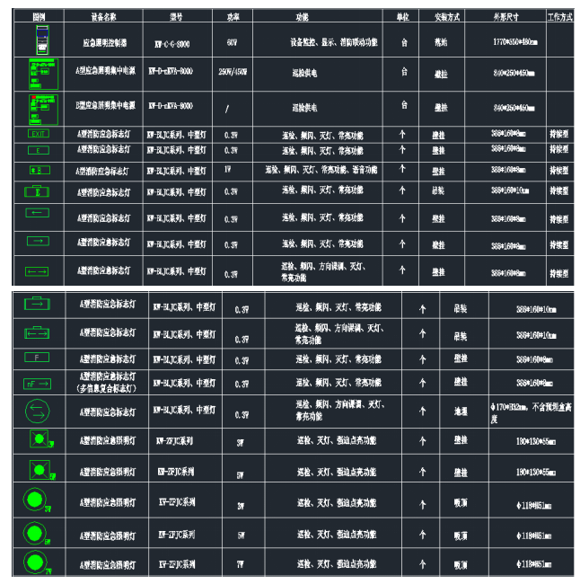 (2)應(yīng)急照明燈具統(tǒng)計(jì):壁掛燈、嵌頂燈、吸頂燈(也可以吊裝),根據(jù)燈具的功率及安裝方式分別進(jìn)行數(shù)量統(tǒng)計(jì)。