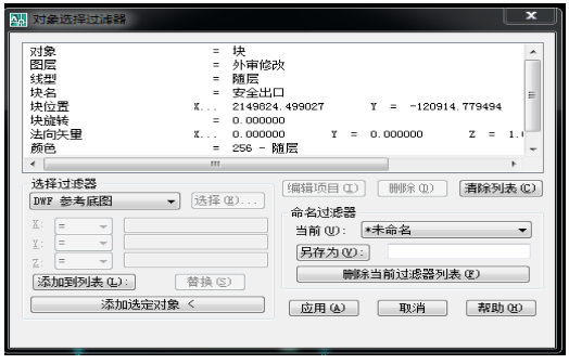 一般在CAD圖紙中通過(guò)FI(對(duì)象選擇過(guò)濾器)功能來(lái)進(jìn)行數(shù)量統(tǒng)計(jì),通過(guò)FI過(guò)濾塊名統(tǒng)計(jì)出各類燈具的數(shù)量。對(duì)象選擇過(guò)濾器功能如下: