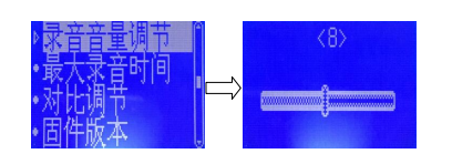 面,,按“↑”“↓”鍵選擇“錄音音量調(diào)節(jié)”,按“確認(rèn)”鍵,再按“音量+”或“音量-”鍵設(shè)置錄音音量