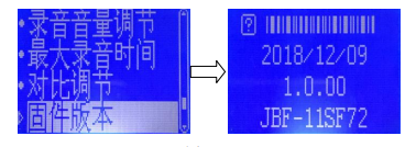 查看本機(jī)的固件版本號(hào),如圖5-19所示,在“系統(tǒng)設(shè)置”界面,按“↑”“↓”鍵選擇“固件版本”,