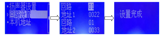 號(hào)設(shè)置界面,按“↑”“↓”設(shè)置分區(qū) 2 回路號(hào)(01-64)按“確認(rèn)”鍵,再按“↑”“↓”設(shè)置地址 2 邏