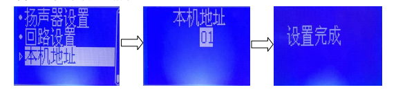 選擇“本機(jī)地址”選項(xiàng),按“確認(rèn)”鍵,再按“↑”“↓”鍵設(shè)置本機(jī)地址(1-99),再按“放音”鍵完