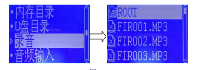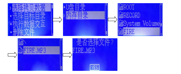 文件夾,按“確認(rèn)”鍵,按“↑”、“↓”鍵選擇“FIRE.MP3”音源文件,按“放音”鍵選擇,最后按“確