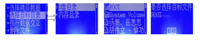 步驟2選擇目標(biāo)目錄,如圖5-26所示,在“數(shù)據(jù)交互”界面,按“↑”、“↓”鍵選擇“選擇目標(biāo)目錄”,