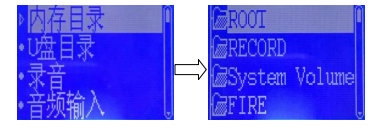 在“內(nèi)存目錄”界面下,按“↑”、“↓”鍵選擇“RECORD”,按“確認(rèn)”鍵,再按“↑”、“↓”鍵