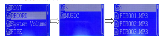 再按“↑”“↓”鍵選擇音頻文件或其它文件夾,如“FIRE”文件夾,按“確認(rèn)”鍵,再按“↑”“↓”鍵