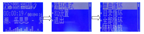 環(huán)模式”,按“確認(rèn)”鍵,進(jìn)入“循環(huán)模式”選擇界面,根據(jù)個(gè)人喜好,按“↑”、“↓”鍵選擇相應(yīng)的模
