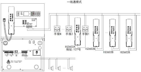| 推薦配置 | 青鳥消防手報(帶插孔)配置 IG3602B、 電話分機 IG3602A 均直接連接到總線端子上(無極性) |